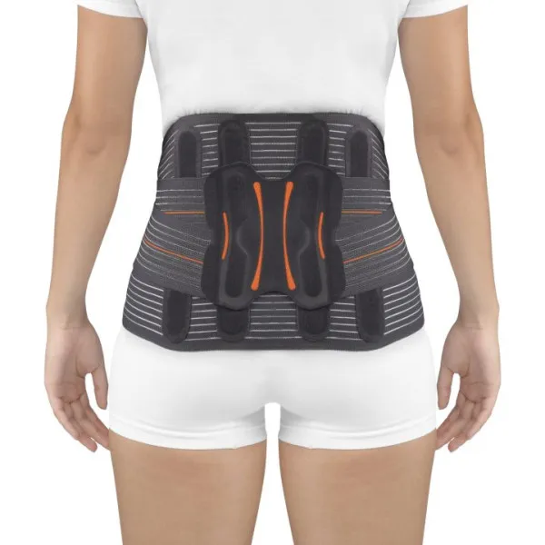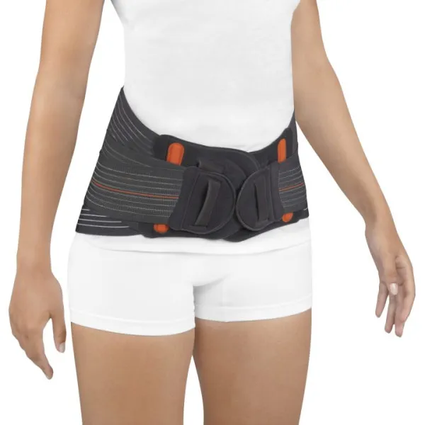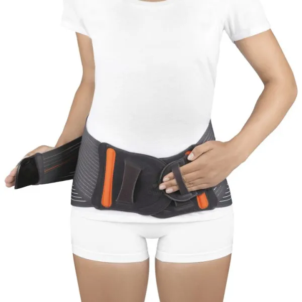 Esta ortesis destaca por su estructura en material multibanda transpirable, que asegura una compresión homogénea y confortable durante su uso. Además, está equipada con cuatro ballenas de acero flexibles en la zona lumbar y dos en la parte anterior, lo que proporciona una sujeción abdominal superior y un ajuste perfecto al cuerpo.