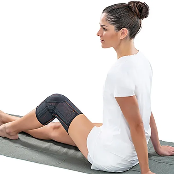 Esta rodillera no solo estabiliza la rodilla, sino que también mejora la sensibilidad propioceptiva, lo que es fundamental para la recuperación de lesiones y operaciones. Por lo tanto, es ideal para el manejo de derrames e hinchazón por artrosis y artritis, irritación postoperatoria y postraumática, y para el soporte en actividades cotidianas o deportivas.